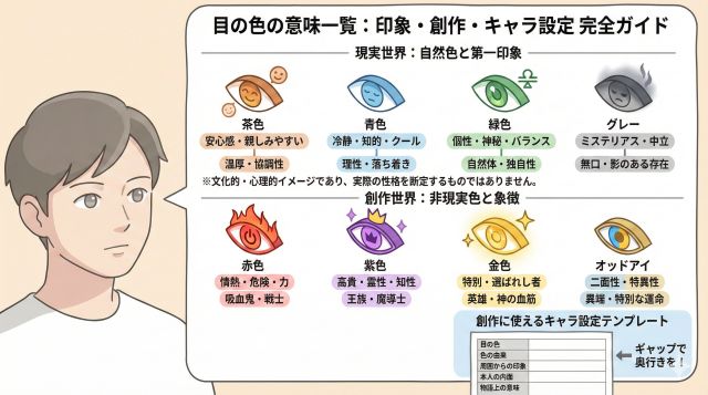 目の色は、単なる外見情報にとどまらず、「印象・物語・象徴」を直感的に伝える非常に重要な要素です。
