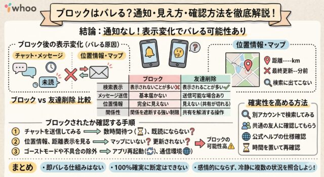 whooはプライバシー配慮の設計上、ブロックの有無を直接知らせない仕様になっています。